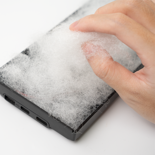 A polyester fiber material that acts as a dampening material, polyfill is great for filling up keyboards of different shapes and sizes.