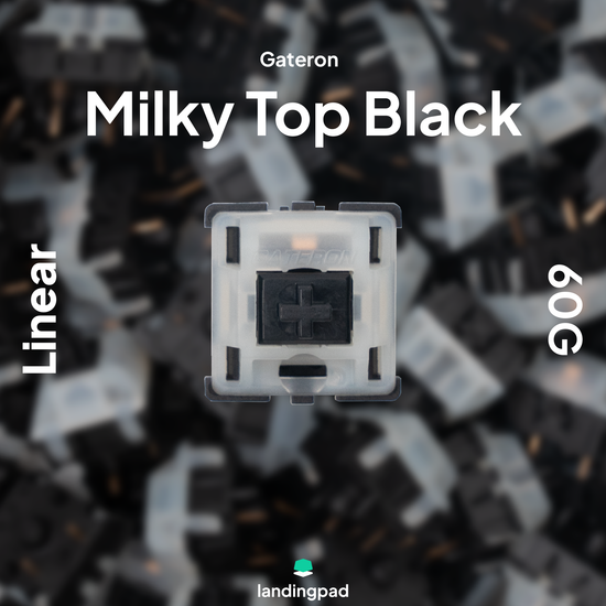 Gateron Milky Top with Black Bottom Black Switch (Linear). These Gateron Black switches are great alternatives that are cheaper and relatively smoother than stock Cherry MX switches.