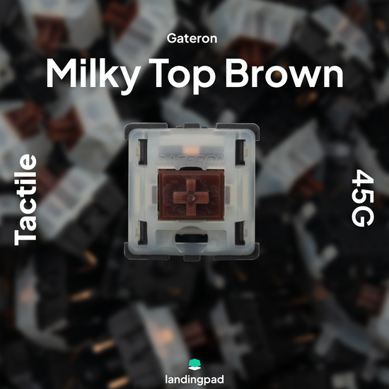Gateron Milky Top with Black Bottom Brown Switch (Tactile). These Gateron Brown switches are great alternatives that are cheaper and relatively smoother than stock Cherry MX switches.