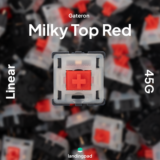 Gateron Milky Top with Black Bottom Red Switch (Linear). These Gateron Red switches are great alternatives that are cheaper and relatively smoother than stock Cherry MX switches.